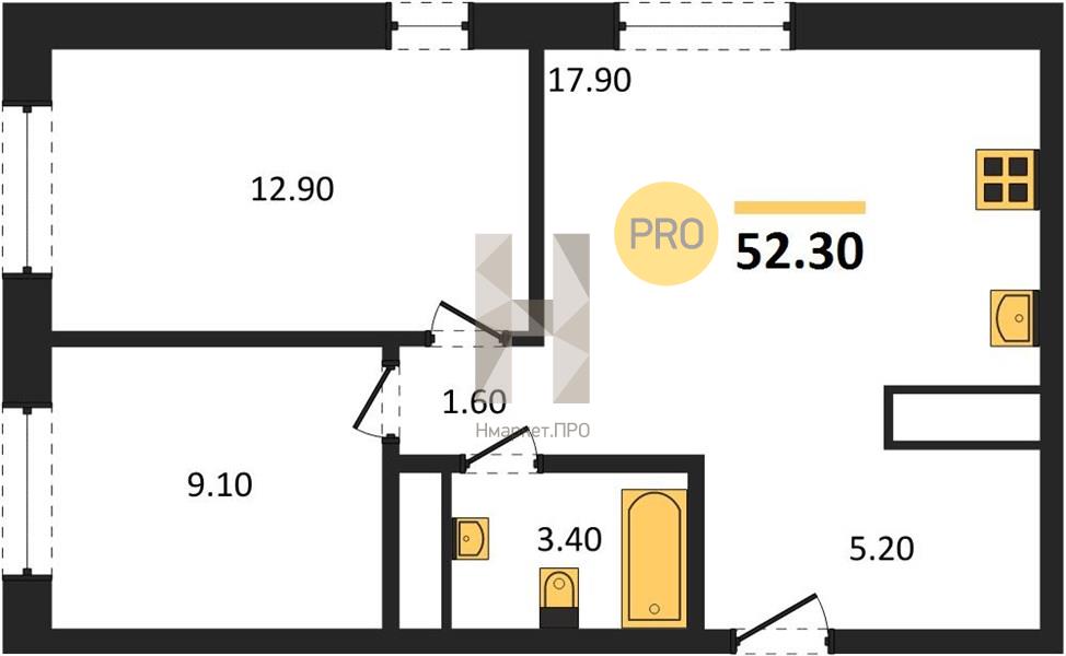 Квартира: 2 к 52,30 кв.м., 16 этаж в комплексе RAZUM на Матвеева, 1 очередь, корп.1, сдача: 4кв. , этажей: 25, адрес Екатеринбург г., Академика Парина ул., , Застройщик: РАЗУМ.