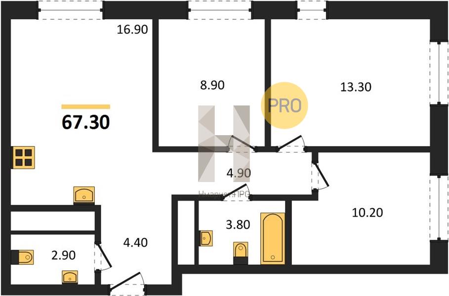 Квартира: 3 к 67,30 кв.м., 2 этаж в комплексе RAZUM на Матвеева, 1 очередь, корп.1, сдача: 4кв. , этажей: 25, адрес Екатеринбург г., Академика Парина ул., , Застройщик: РАЗУМ.