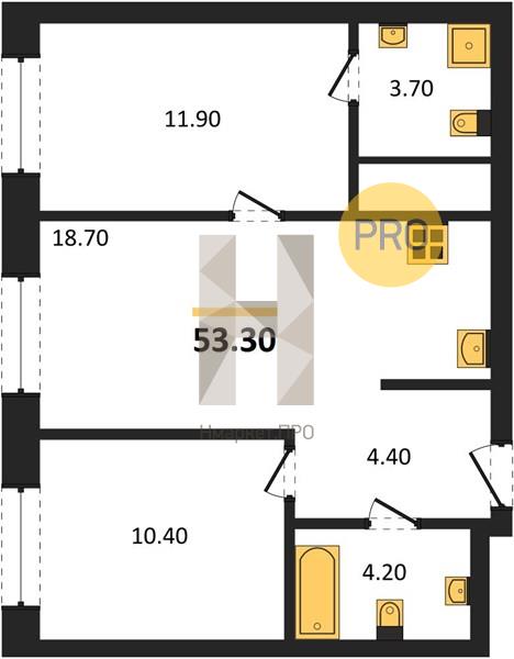 Квартира: 2 к 53,30 кв.м., 2 этаж в комплексе RAZUM на Матвеева, 1 очередь, корп.1, сдача: 4кв. , этажей: 25, адрес Екатеринбург г., Академика Парина ул., , Застройщик: РАЗУМ.
