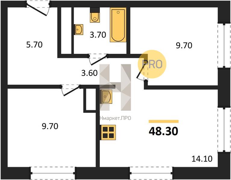 | Общая площадь: | 48.30 м2 |