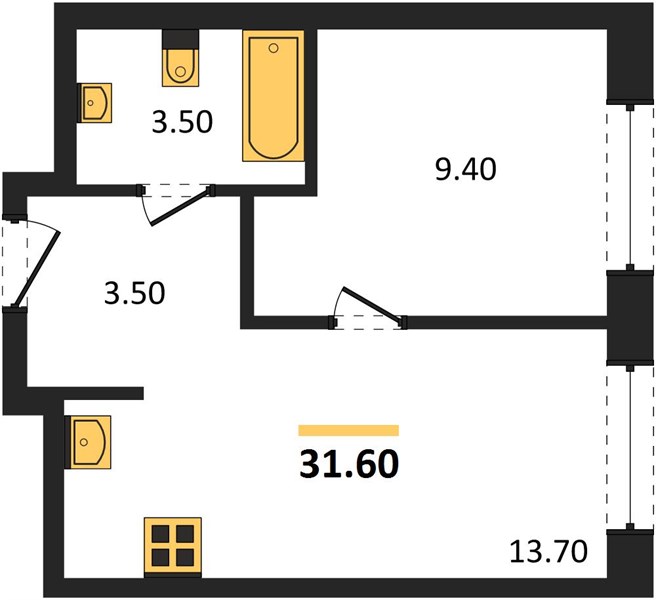 Квартира: 1 к 31,60 кв.м., 4 этаж в комплексе RAZUM на Матвеева, 1 очередь, корп.1, сдача: 4кв. , этажей: 25, адрес Екатеринбург г., Академика Парина ул., , Застройщик: РАЗУМ.