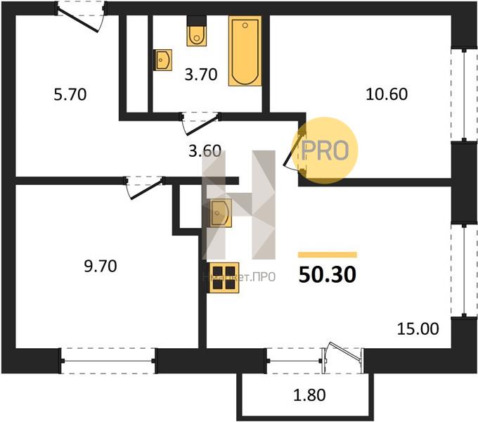 Квартира: 2 к 50,30 кв.м., 8 этаж в комплексе RAZUM на Матвеева, 1 очередь, корп.1, сдача: 4кв. , этажей: 25, адрес Екатеринбург г., Академика Парина ул., , Застройщик: РАЗУМ.