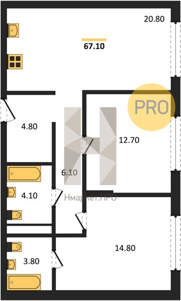 | Общая площадь: | 66.80 м2 |