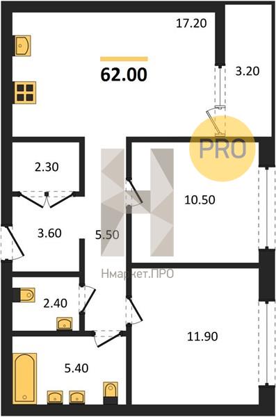 | Общая площадь: | 62.00 м2 |