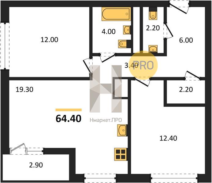 | Общая площадь: | 64.30 м2 |