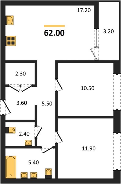 | Общая площадь: | 62.00 м2 |