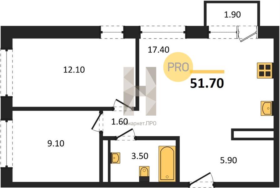| Общая площадь: | 51.70 м2 |