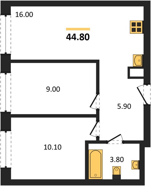 Квартира: 2 к 44,70 кв.м., 14 этаж в комплексе RAZUM на Матвеева, 1 очередь, корп.2, сдача: 4кв. , этажей: 16, адрес Екатеринбург г., Академика Парина ул., , Застройщик: РАЗУМ.