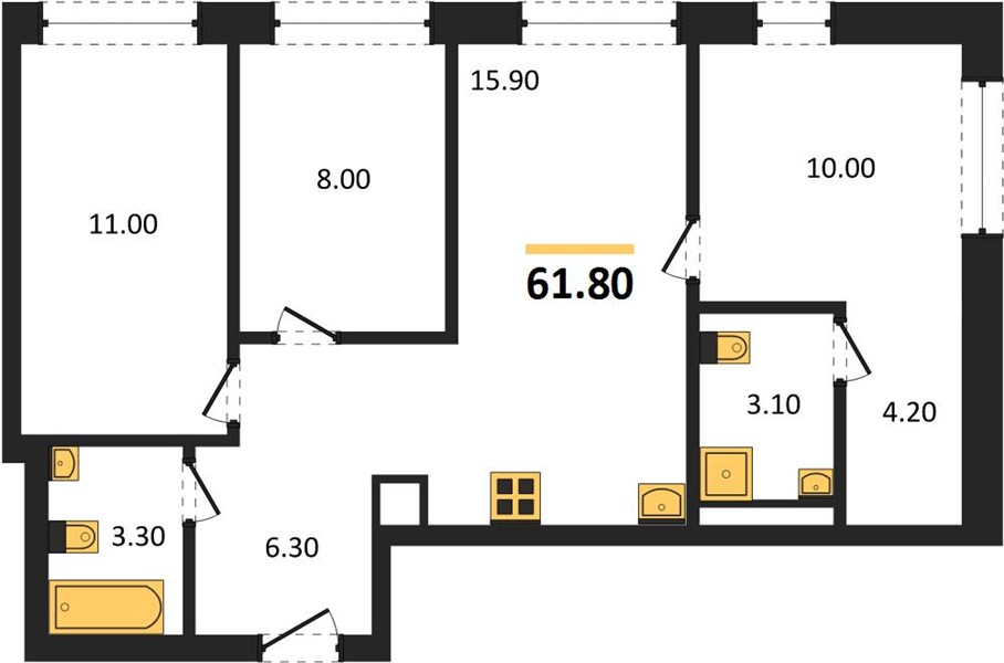 Квартира: 3 к 61,70 кв.м., 16 этаж в комплексе RAZUM на Матвеева, 1 очередь, корп.2, сдача: 4кв. , этажей: 16, адрес Екатеринбург г., Академика Парина ул., , Застройщик: РАЗУМ.