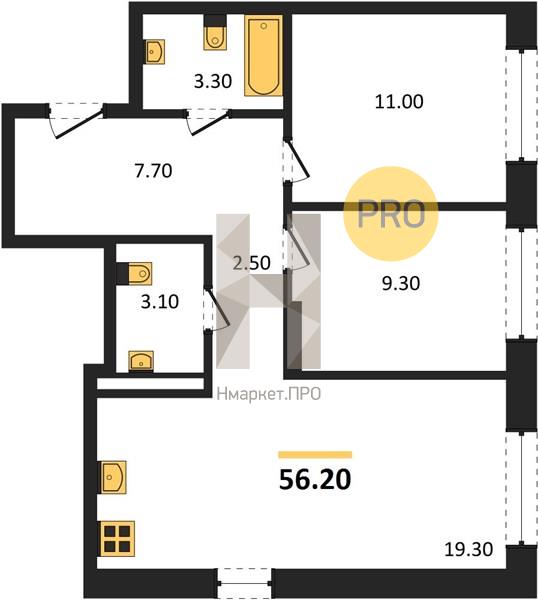 Квартира: 2 к 56,20 кв.м., 2 этаж в комплексе RAZUM на Матвеева, 1 очередь, корп.2, сдача: 4кв. , этажей: 16, адрес Екатеринбург г., Академика Парина ул., , Застройщик: РАЗУМ.
