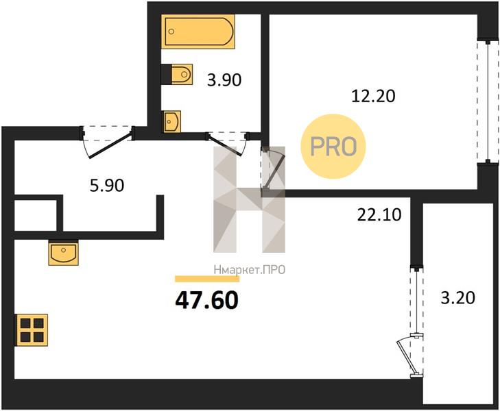 Квартира: 1 к 47,60 кв.м., 8 этаж в комплексе Толк Академический, 1 очередь, корп.1, сдача: 3кв. , этажей: 25, адрес Екатеринбург г., Академика Парина ул., , Застройщик: Толк.