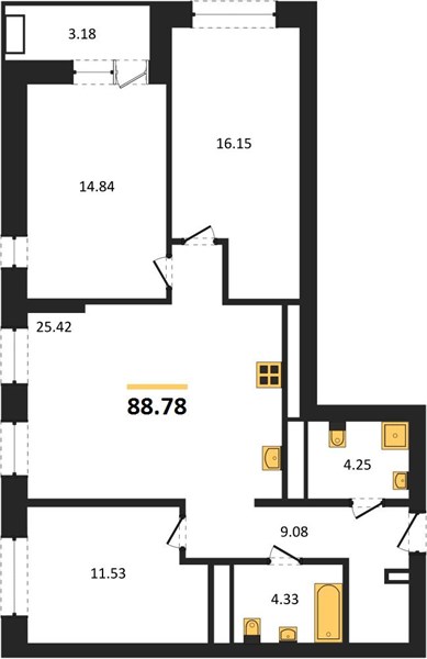 | Общая площадь: | 88.78 м2 |