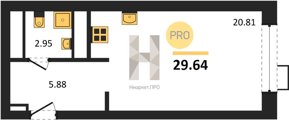 Студия: 29,64 кв.м., 21 этаж в комплексе Речной квартал, 1 очередь, корп.1, сдача: 1кв. , этажей: 26, адрес Екатеринбург г., Академика Парина ул., , Застройщик: АтомСтройКомплекс.