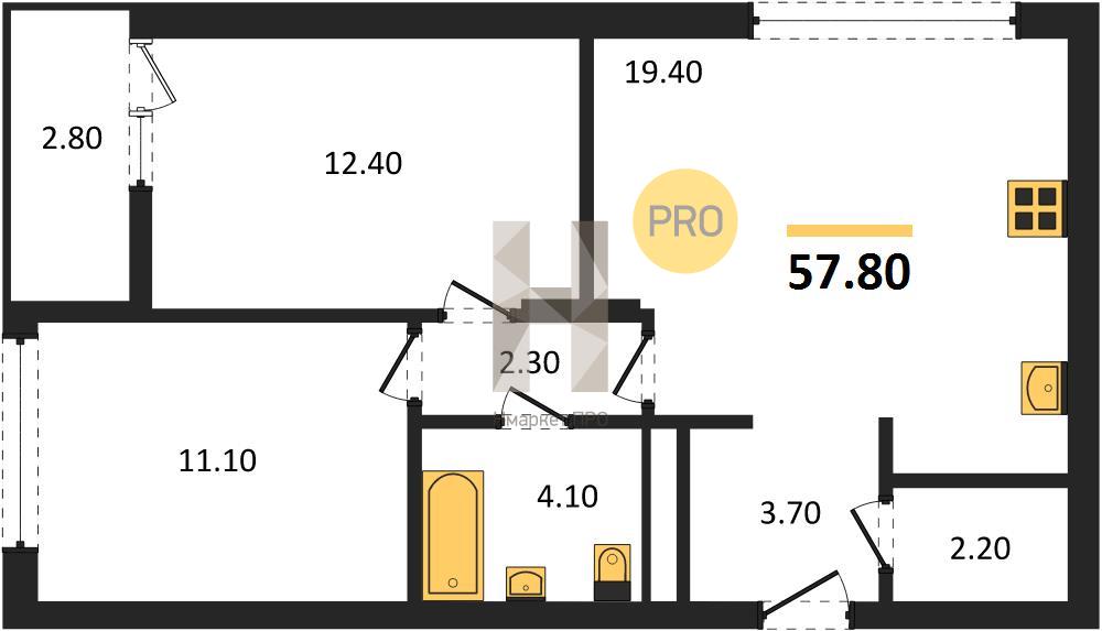 | Общая площадь: | 57.80 м2 |