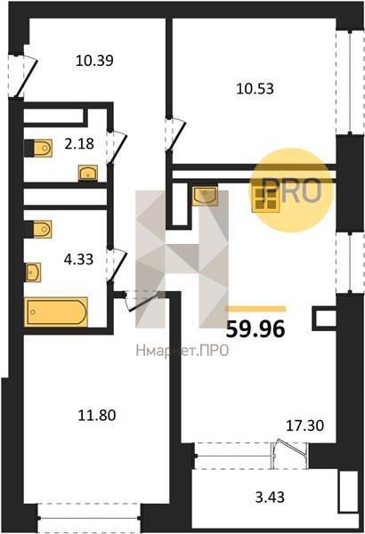 Квартира: 2 к 59,96 кв.м., 23 этаж в комплексе Речной квартал, 1 очередь, корп.1, сдача: 2кв. , этажей: 26, адрес Екатеринбург г., Академика Парина ул., , Застройщик: АтомСтройКомплекс.