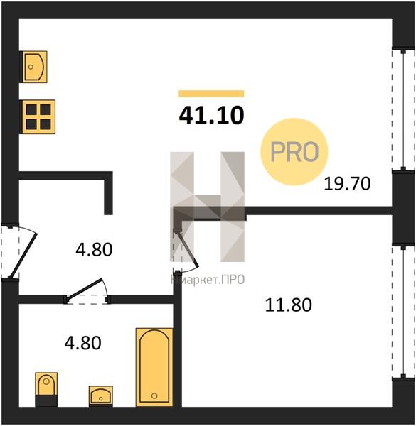 Квартира: 1 к 40,90 кв.м., 2 этаж в комплексе Толк Академический, 1 очередь, корп.1, сдача: 3кв. , этажей: 25, адрес Екатеринбург г., Академика Парина ул., , Застройщик: Толк.