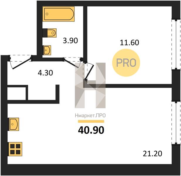| Общая площадь: | 40.90 м2 |