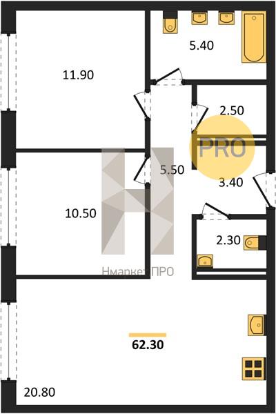 Квартира: 2 к 62,20 кв.м., 5 этаж в комплексе Толк Академический, 1 очередь, корп.1, сдача: 3кв. , этажей: 25, адрес Екатеринбург г., Академика Парина ул., , Застройщик: Толк.