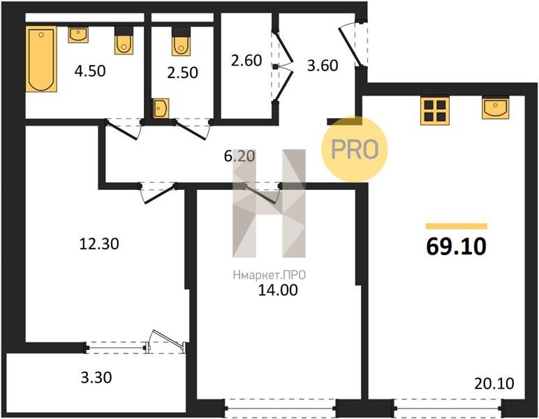 | Общая площадь: | 69.20 м2 |