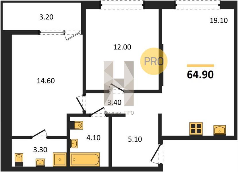 Квартира: 2 к 64,90 кв.м., 19 этаж в комплексе Толк Академический, 1 очередь, корп.1, сдача: 3кв. , этажей: 25, адрес Екатеринбург г., Академика Парина ул., , Застройщик: Толк.