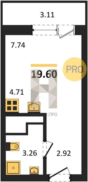 Купить студию, 19.60 м2 № 5712522
