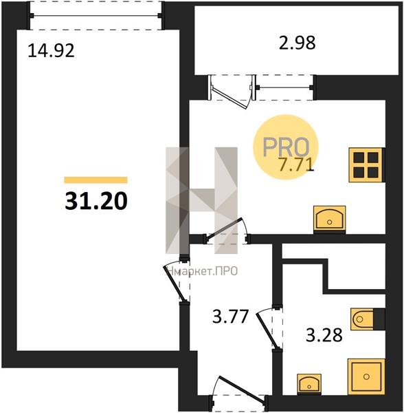 Квартира: 1 к 31,20 кв.м., 20 этаж в комплексе Старт, 1 очередь, корп.1.1-1.2, сдача: 1кв. , этажей: 25, адрес Екатеринбург г., Академика Вонсовского ул., , Застройщик: TEN девелопмент.