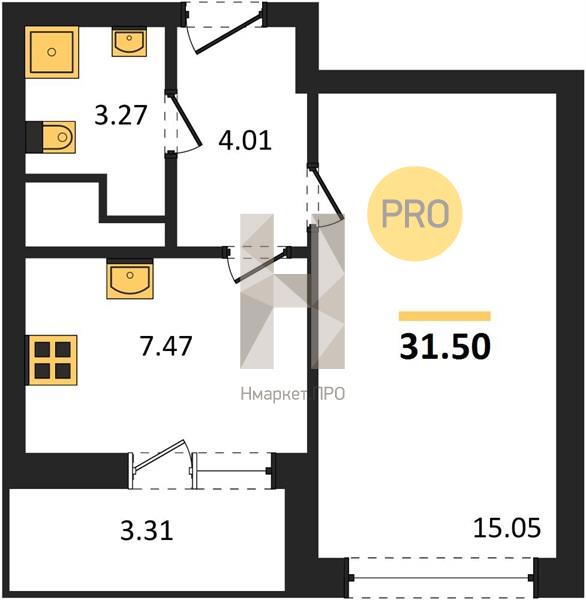 Квартира: 1 к 31,50 кв.м., 20 этаж в комплексе Старт, 1 очередь, корп.1.1-1.2, сдача: 1кв. , этажей: 25, адрес Екатеринбург г., Академика Вонсовского ул., , Застройщик: TEN девелопмент.