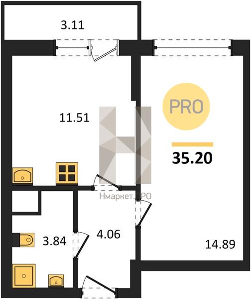 Квартира: 1 к 35,20 кв.м., 4 этаж в комплексе Старт, 1 очередь, корп.1.1-1.2, сдача: 1кв. , этажей: 25, адрес Екатеринбург г., Академика Вонсовского ул., , Застройщик: TEN девелопмент.