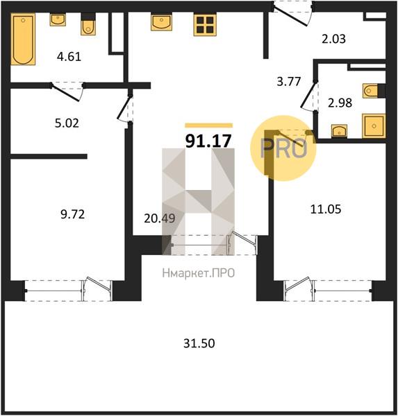 Квартира: 2 к 91,17 кв.м., 2 этаж в комплексе Балтийский, 10 очередь, корп.3, сдача: 4кв. , этажей: 8, адрес Екатеринбург г., Академика Вонсовского ул., , Застройщик: АтомСтройКомплекс.