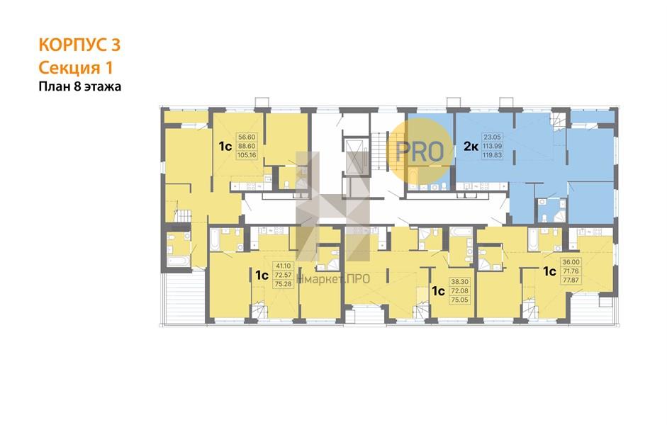 Квартира: 1 к 75,28 кв.м., 8 этаж в комплексе Балтийский, 10 очередь, корп.3, сдача: 4кв. , этажей: 8, адрес Екатеринбург г., Академика Вонсовского ул., , Застройщик: АтомСтройКомплекс.