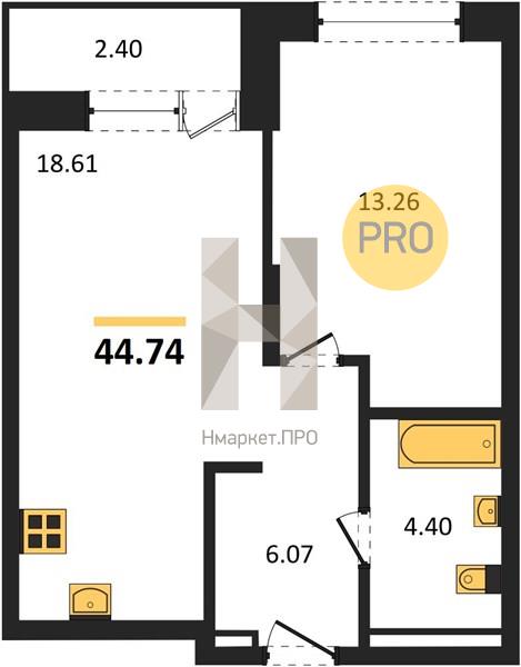 Квартира: 1 к 44,74 кв.м., 8 этаж в комплексе Балтийский, 10 очередь, корп.1, сдача: 4кв. , этажей: 13, адрес Екатеринбург г., Академика Вонсовского ул., , Застройщик: АтомСтройКомплекс.