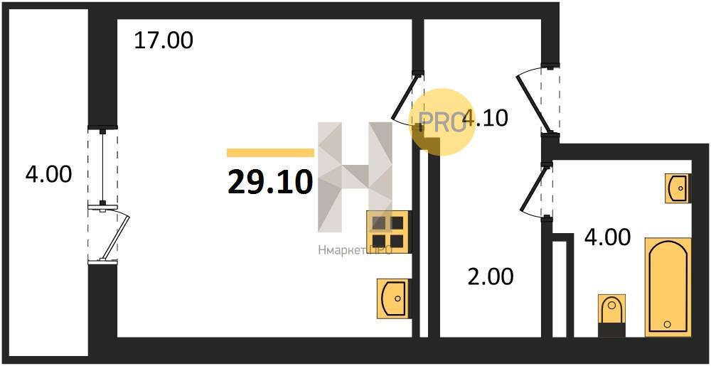 Студия: 29,10 кв.м., 18 этаж в комплексе Жилой дом 7Я, 1 очередь, корп.1, сдача: 4кв. , этажей: 18, адрес Екатеринбург г., Александровская ул., д. 3А, Застройщик: РС-Девелопмент.