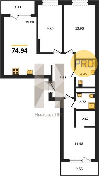 Квартира: 3 к 75,15 кв.м., 16 этаж в комплексе Amundsen, 2 очередь, корп.1, сдача: 1кв. , этажей: 24, адрес Екатеринбург г., Амундсена ул., , Застройщик: Прогресс.