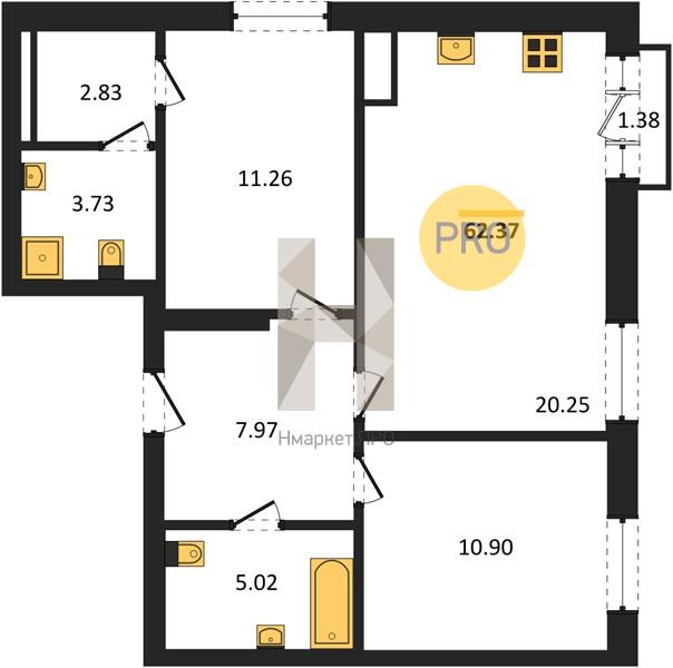 Квартира: 2 к 62,33 кв.м., 16 этаж в комплексе Amundsen, 2 очередь, корп.1, сдача: 2кв. , этажей: 24, адрес Екатеринбург г., Амундсена ул., , Застройщик: Прогресс.