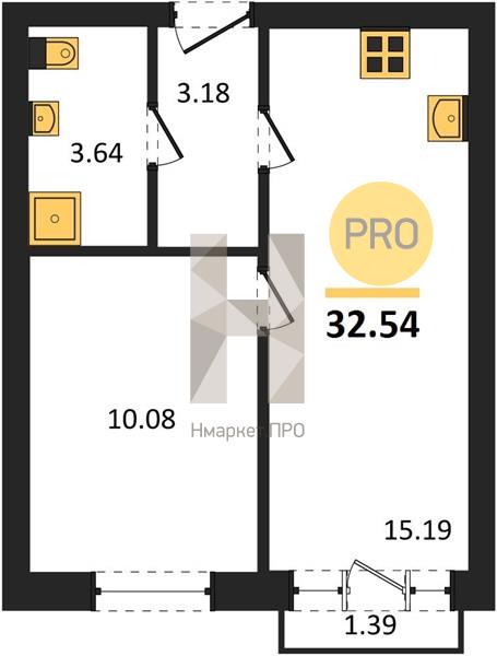 Квартира: 1 к 32,54 кв.м., 19 этаж в комплексе Amundsen, 2 очередь, корп.1, сдача: 2кв. , этажей: 24, адрес Екатеринбург г., Амундсена ул., , Застройщик: Прогресс.