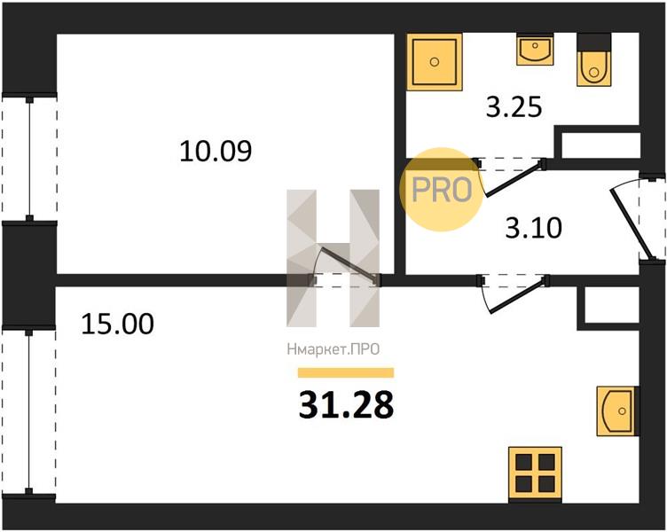 Квартира: 1 к 31,28 кв.м., 21 этаж в комплексе Amundsen, 2 очередь, корп.1, сдача: 2кв. , этажей: 24, адрес Екатеринбург г., Амундсена ул., , Застройщик: Прогресс.