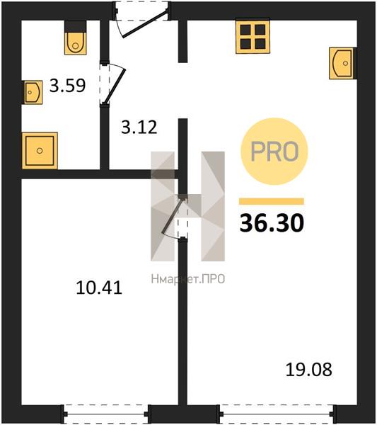 Квартира: 1 к 36,30 кв.м., 10 этаж в комплексе Progress Академический, 1 очередь, корп.1, сдача: 4кв. , этажей: 22, адрес Екатеринбург г., Амундсена ул., , Застройщик: Прогресс.