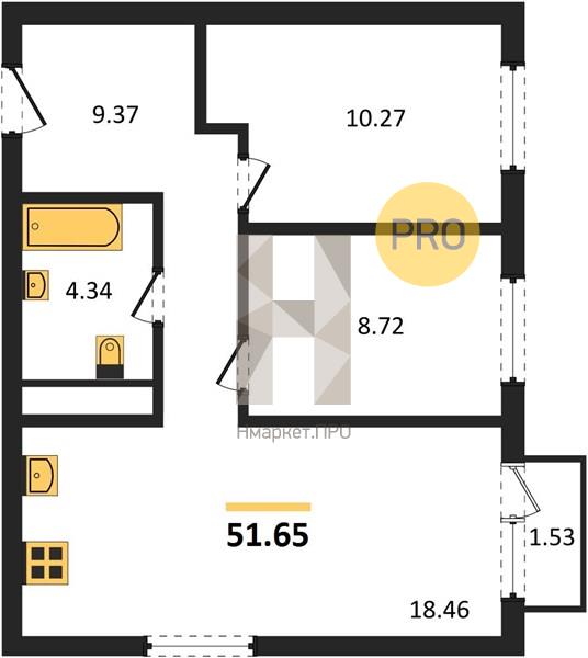 Квартира: 2 к 51,65 кв.м., 2 этаж в комплексе Progress Академический, 1 очередь, корп.2, сдача: 4кв. , этажей: 18, адрес Екатеринбург г., Амундсена ул., , Застройщик: Прогресс.
