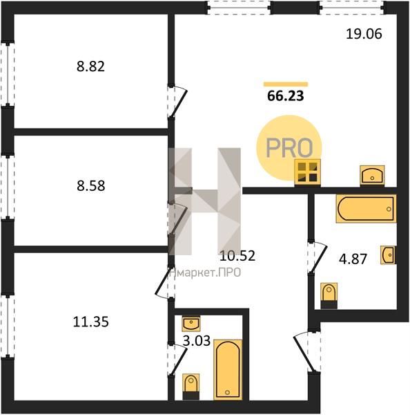 Квартира: 3 к 64,97 кв.м., 13 этаж в комплексе Progress Академический, 1 очередь, корп.2, сдача: 4кв. , этажей: 18, адрес Екатеринбург г., Амундсена ул., , Застройщик: Прогресс.