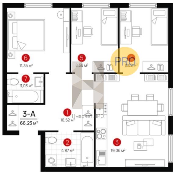 Квартира: 3 к 64,97 кв.м., 16 этаж в комплексе Progress Академический, 1 очередь, корп.1, сдача: 4кв. , этажей: 22, адрес Екатеринбург г., Амундсена ул., , Застройщик: Прогресс.