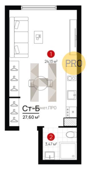 | Жилая площадь: | 24.13 м2 |