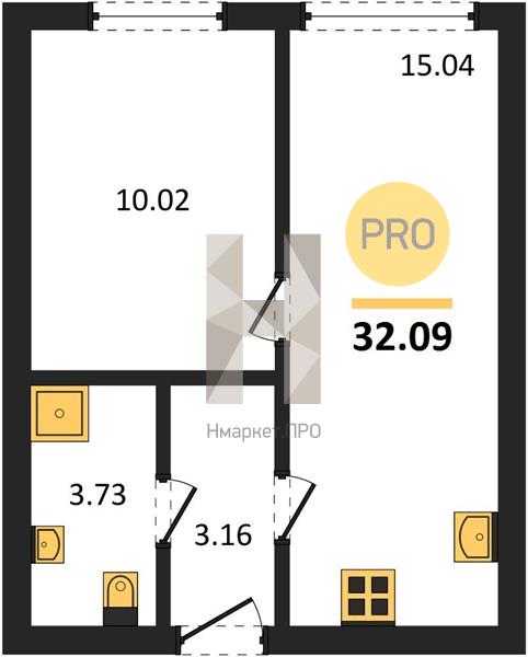 Квартира: 1 к 32,09 кв.м., 20 этаж в комплексе Progress Академический, 1 очередь, корп.1, сдача: 4кв. , этажей: 22, адрес Екатеринбург г., Амундсена ул., , Застройщик: Прогресс.