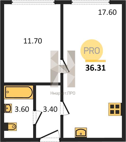 Квартира: 1 к 36,26 кв.м., 3 этаж в комплексе Amundsen, 3 очередь, корп.2, сдача: 1кв. , этажей: 14, адрес Екатеринбург г., Амундсена ул., , Застройщик: Прогресс.