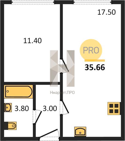 Квартира: 1 к 35,66 кв.м., 4 этаж в комплексе Amundsen, 3 очередь, корп.2, сдача: 1кв. , этажей: 14, адрес Екатеринбург г., Амундсена ул., , Застройщик: Прогресс.