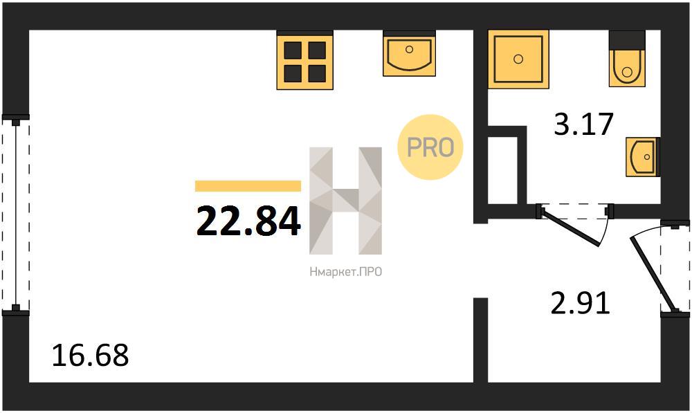 Студия: 22,84 кв.м., 3 этаж в комплексе Progress Академический, 1 очередь, корп.1, сдача: 4кв. , этажей: 22, адрес Екатеринбург г., Амундсена ул., , Застройщик: Прогресс.