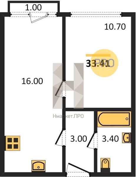 Квартира: 1 к 33,29 кв.м., 4 этаж в комплексе Amundsen, 3 очередь, корп.2, сдача: 1кв. , этажей: 14, адрес Екатеринбург г., Амундсена ул., , Застройщик: Прогресс.