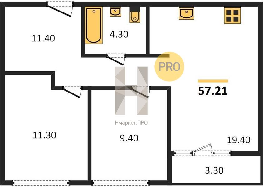 Квартира: 2 к 57,21 кв.м., 5 этаж в комплексе Amundsen, 3 очередь, корп.2, сдача: 1кв. , этажей: 14, адрес Екатеринбург г., Амундсена ул., , Застройщик: Прогресс.