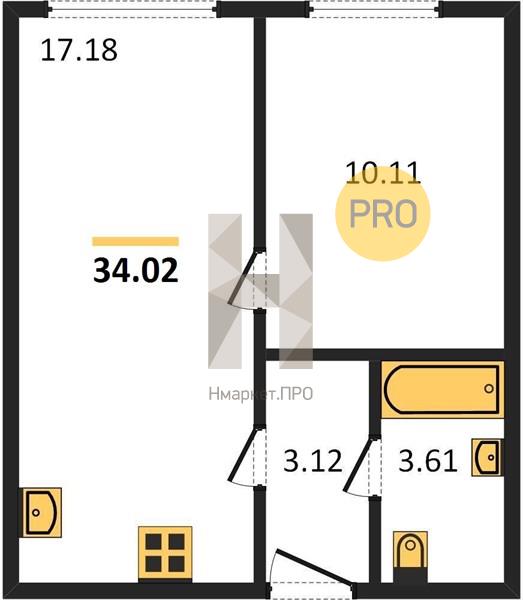 Квартира: 1 к 34,02 кв.м., 13 этаж в комплексе Amundsen, 2 очередь, корп.1, сдача: 2кв. , этажей: 24, адрес Екатеринбург г., Амундсена ул., , Застройщик: Прогресс.
