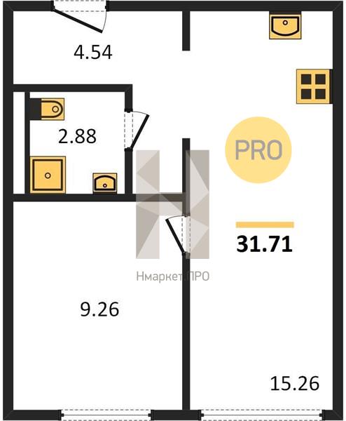 Квартира: 1 к 31,71 кв.м., 15 этаж в комплексе Amundsen, 2 очередь, корп.1, сдача: 2кв. , этажей: 24, адрес Екатеринбург г., Амундсена ул., , Застройщик: Прогресс.