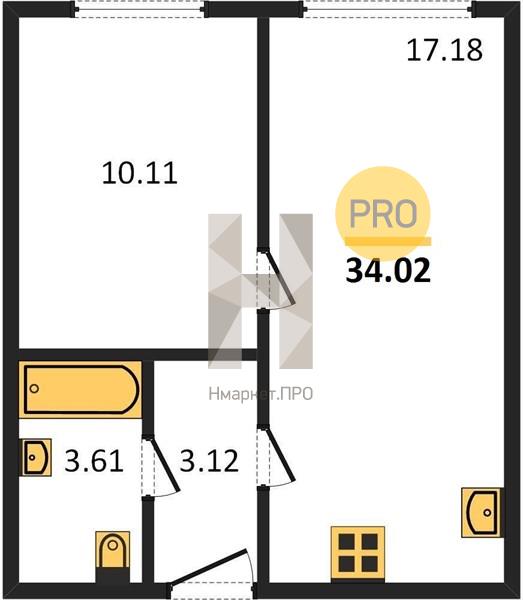 Квартира: 1 к 34,02 кв.м., 17 этаж в комплексе Amundsen, 2 очередь, корп.1, сдача: 2кв. , этажей: 24, адрес Екатеринбург г., Амундсена ул., , Застройщик: Прогресс.